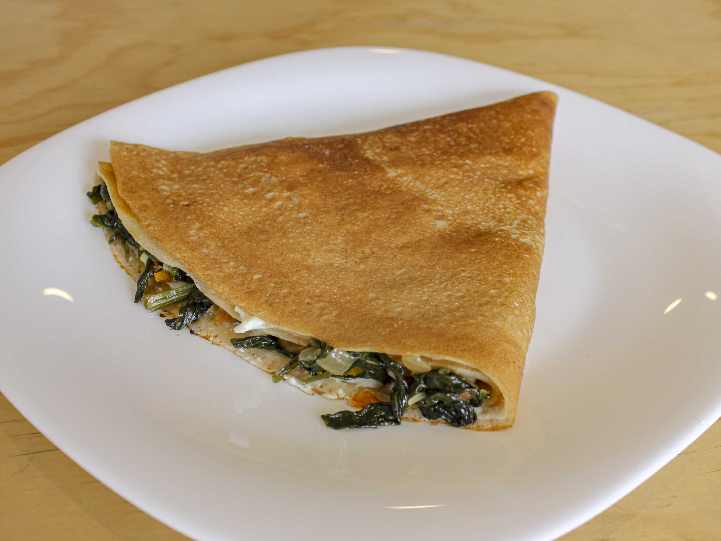 Deliciosa crepa de philadelphia con espinacas preparadas al estilo mexicano (todas nuestras crepas llevan pimienta)