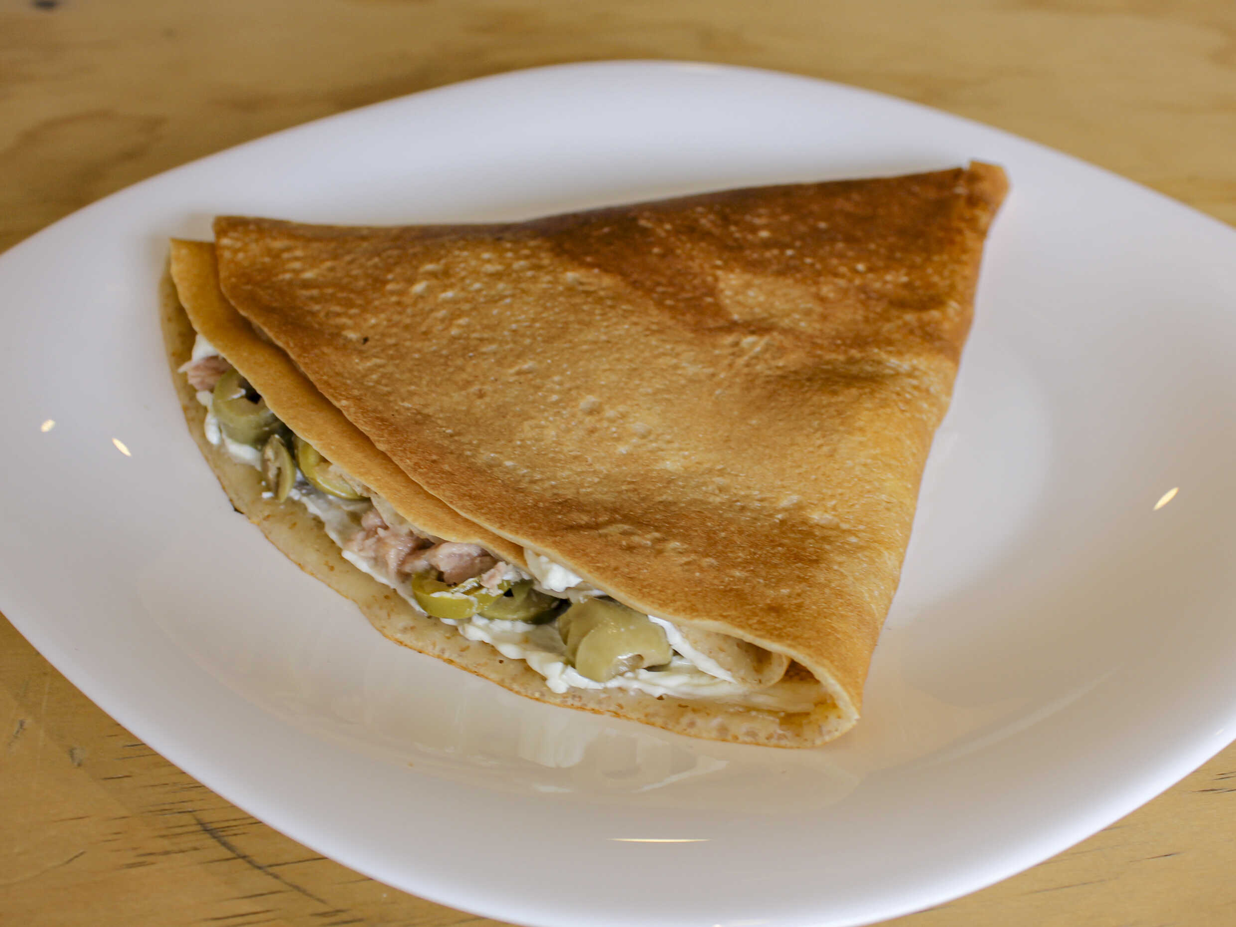 Crepa de philadelphia con atún y aceitunas (todas nuestras crepas llevan pimienta)