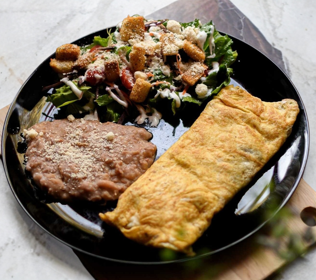 Exquisito omelet acompañado de frijoles refritos y una pequeña porción de nuestra ensalada italiana, puedes escoger el vegetal que sea de tu gusto. Todos nuestros omelet llevan queso manchego como base.