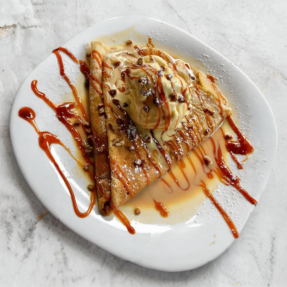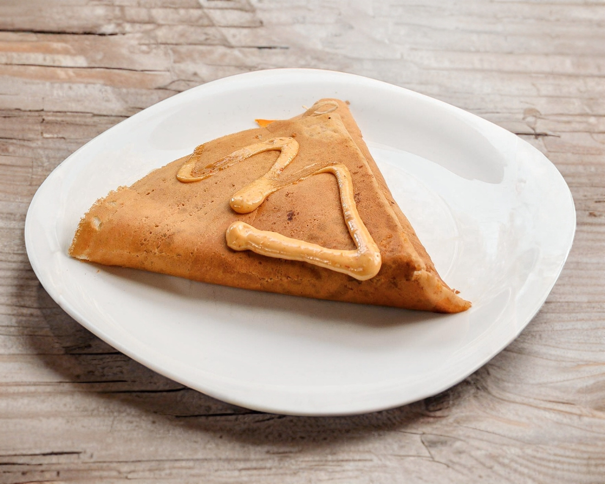 Deliciosa crepa bañada en rompope como base nutella con plátano canela y nuez natural.