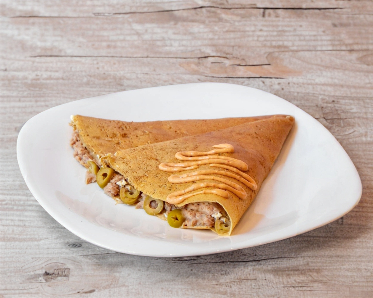 Crepa de philadelphia con atún y aceitunas (todas nuestras crepas llevan pimienta)