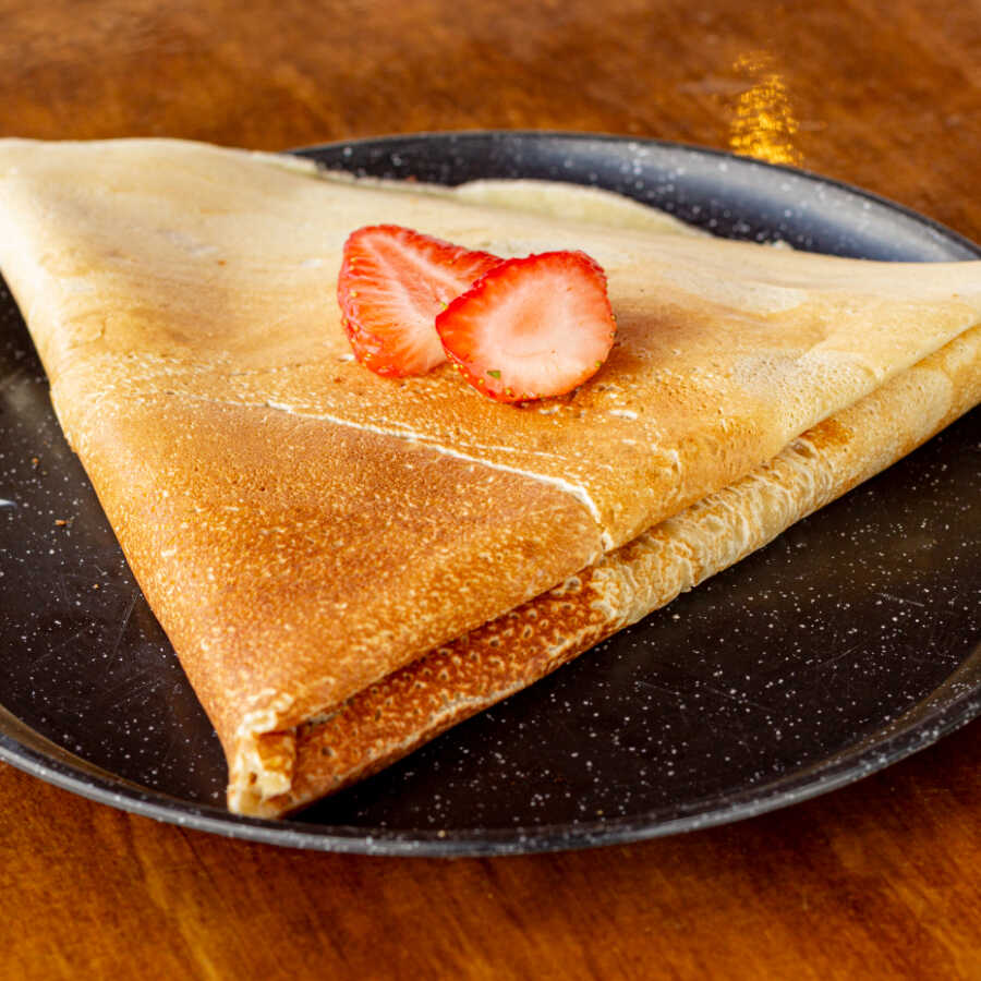 Crepa dulce acompañada de alguna fruta de tu elección bañada en crema especial receta de la casa
