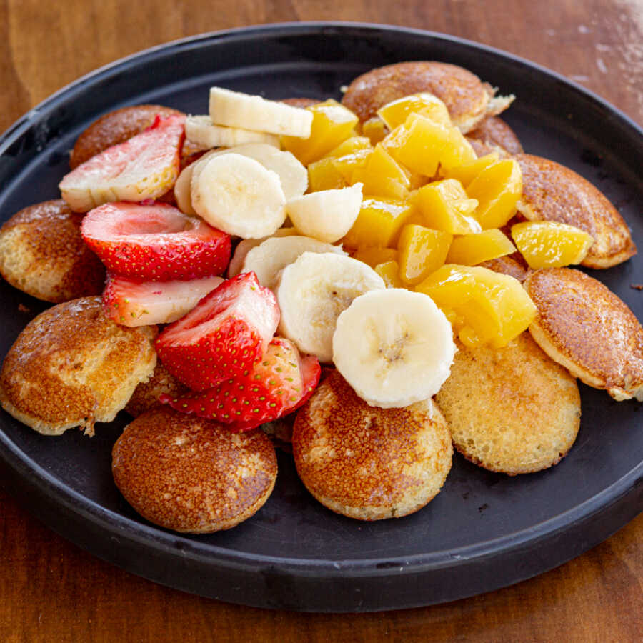 10 Mini Hot Cakes especiales (Fruta y crema)