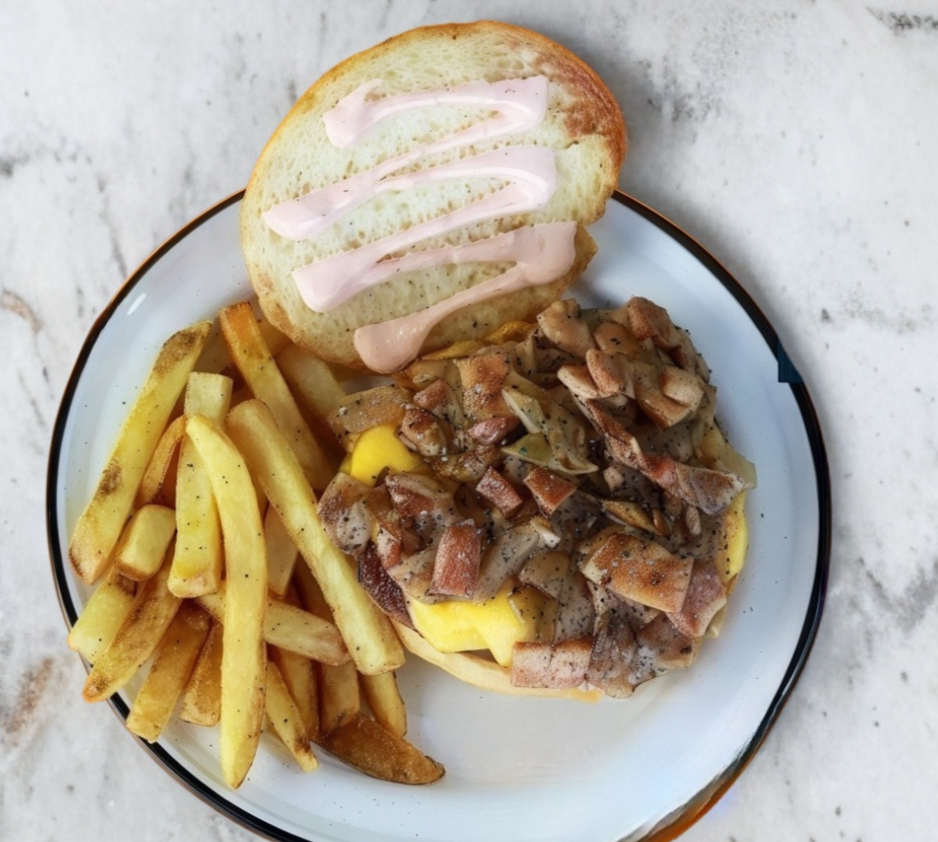 Pan casero, 150 gr de la mejor carne de sirlon, queso manchego y Philadelphia. Nuestra receta secreta de tocino marinado, cebolla caramelizada, mayonesa, cátsup, jitomate asado y lechuga.