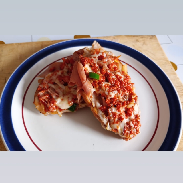 Dos piezas de pan suaves cubiertas con frijolitos, jamón, pico de gallo, chorizo, queso asadero derretido y salsa. ¡una explosión de sabor!
