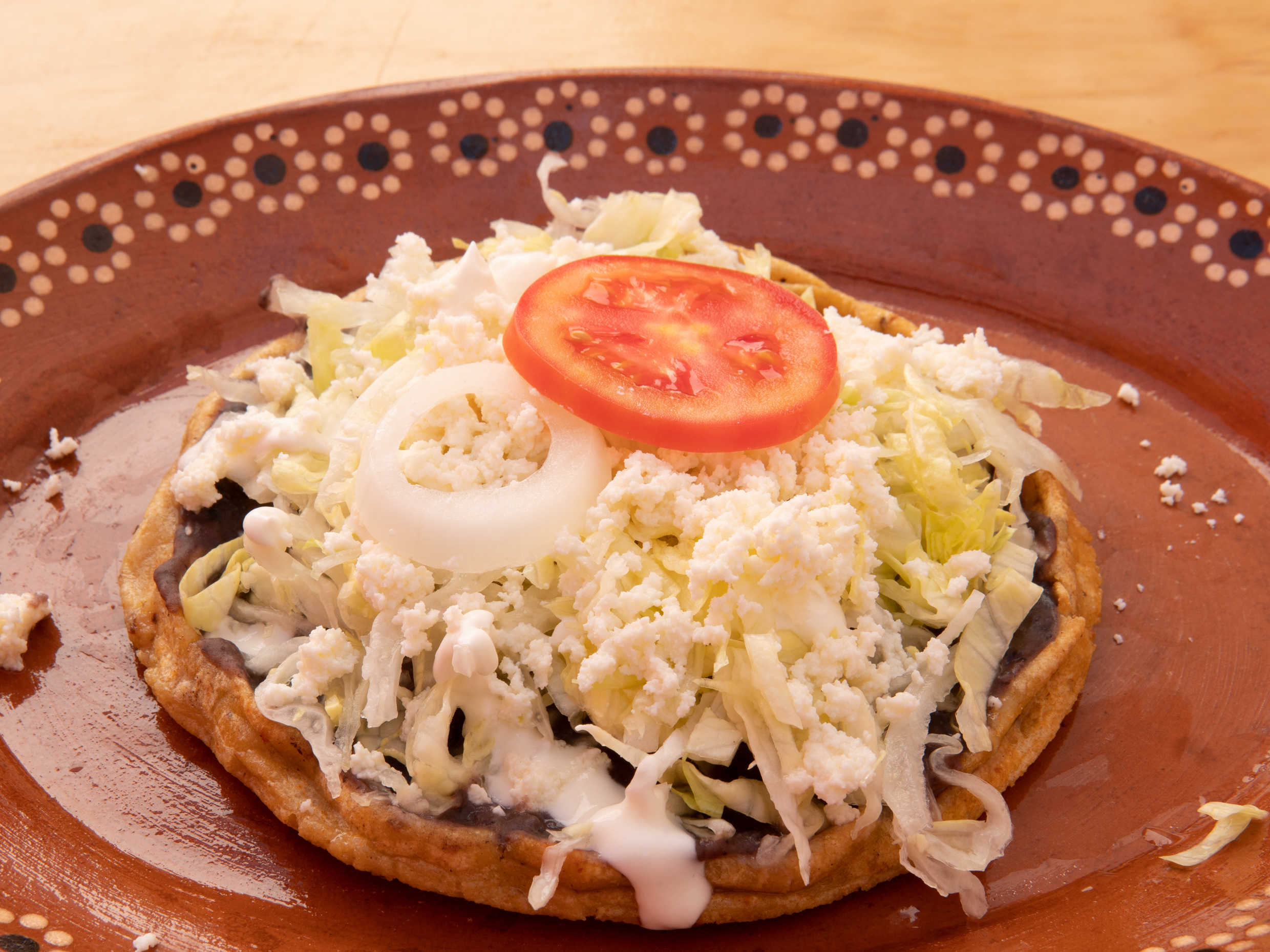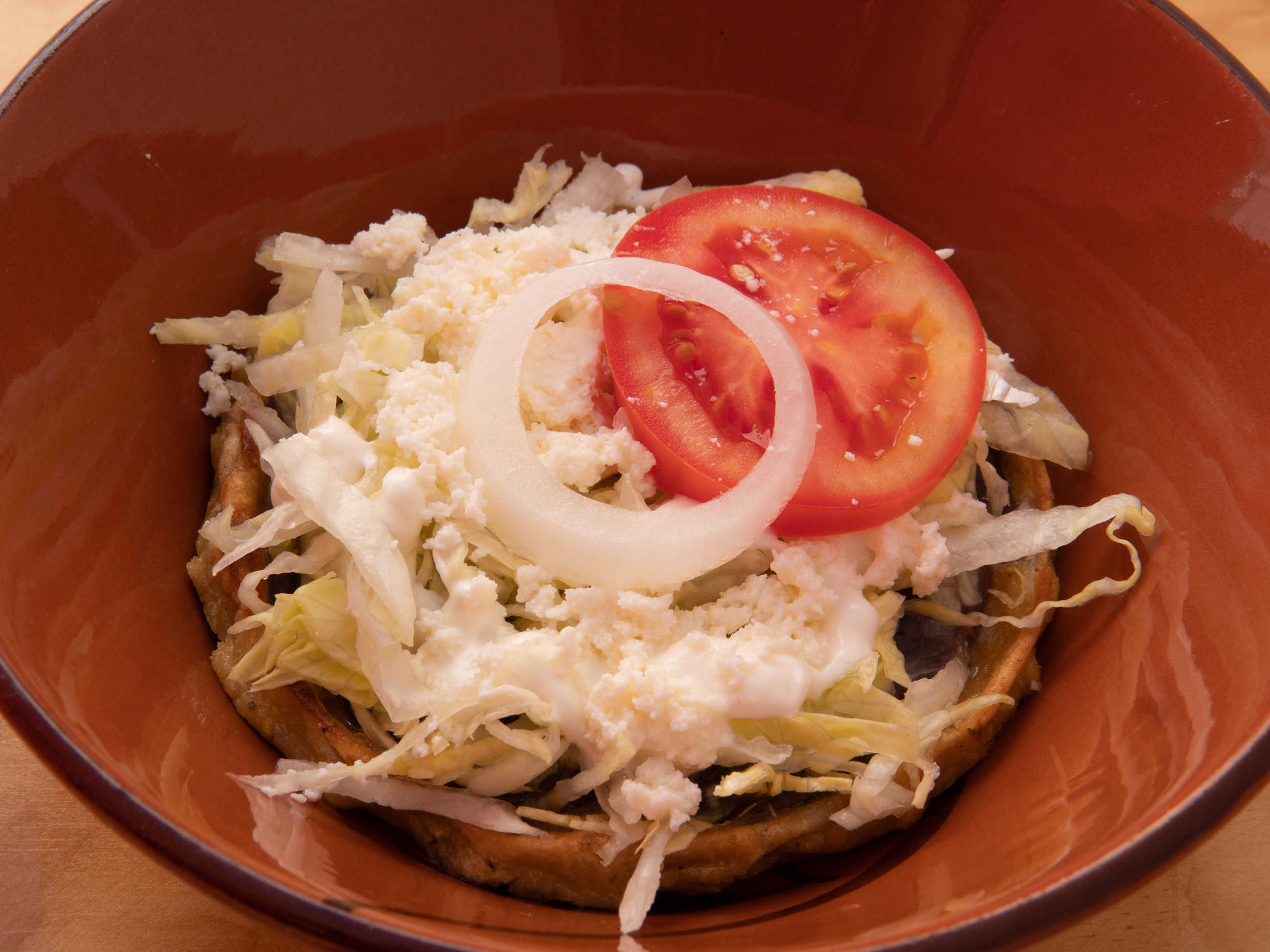 frjoles, cebolla, cilantro, crema