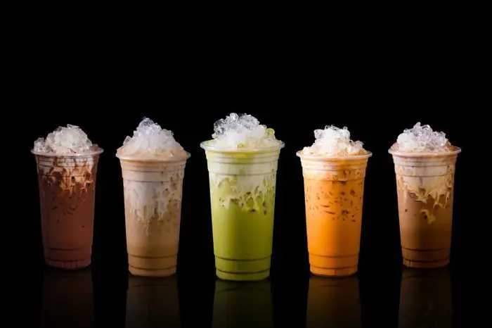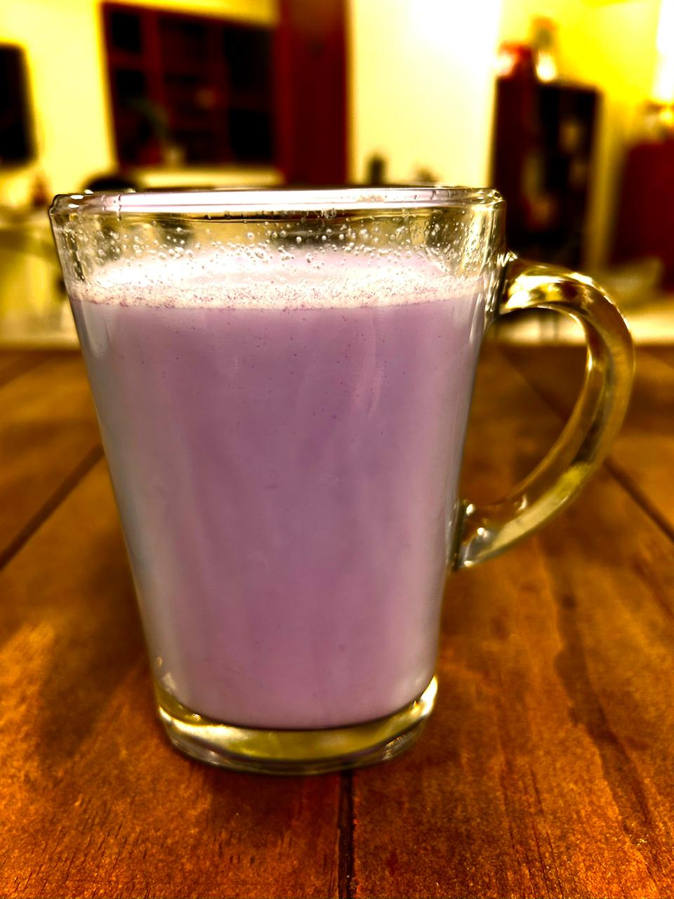 Dulce y cremosa bebida fría a base de taro, leche y hielo.