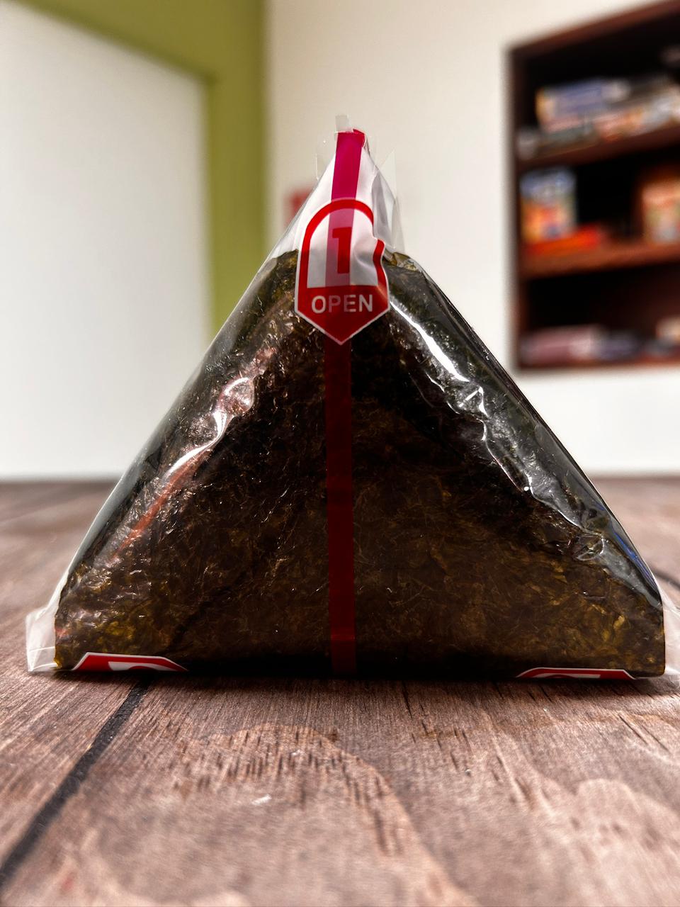 Bola de arroz en forma de triangulo, cubierta con alga y un relleno a escoger. Se envía con un evoltorio que permite que el alga se mantenga fresca y seca.