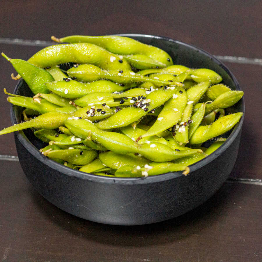 Frijoles japoneses en su vaina, al vapor y sazonados con sal de mar.