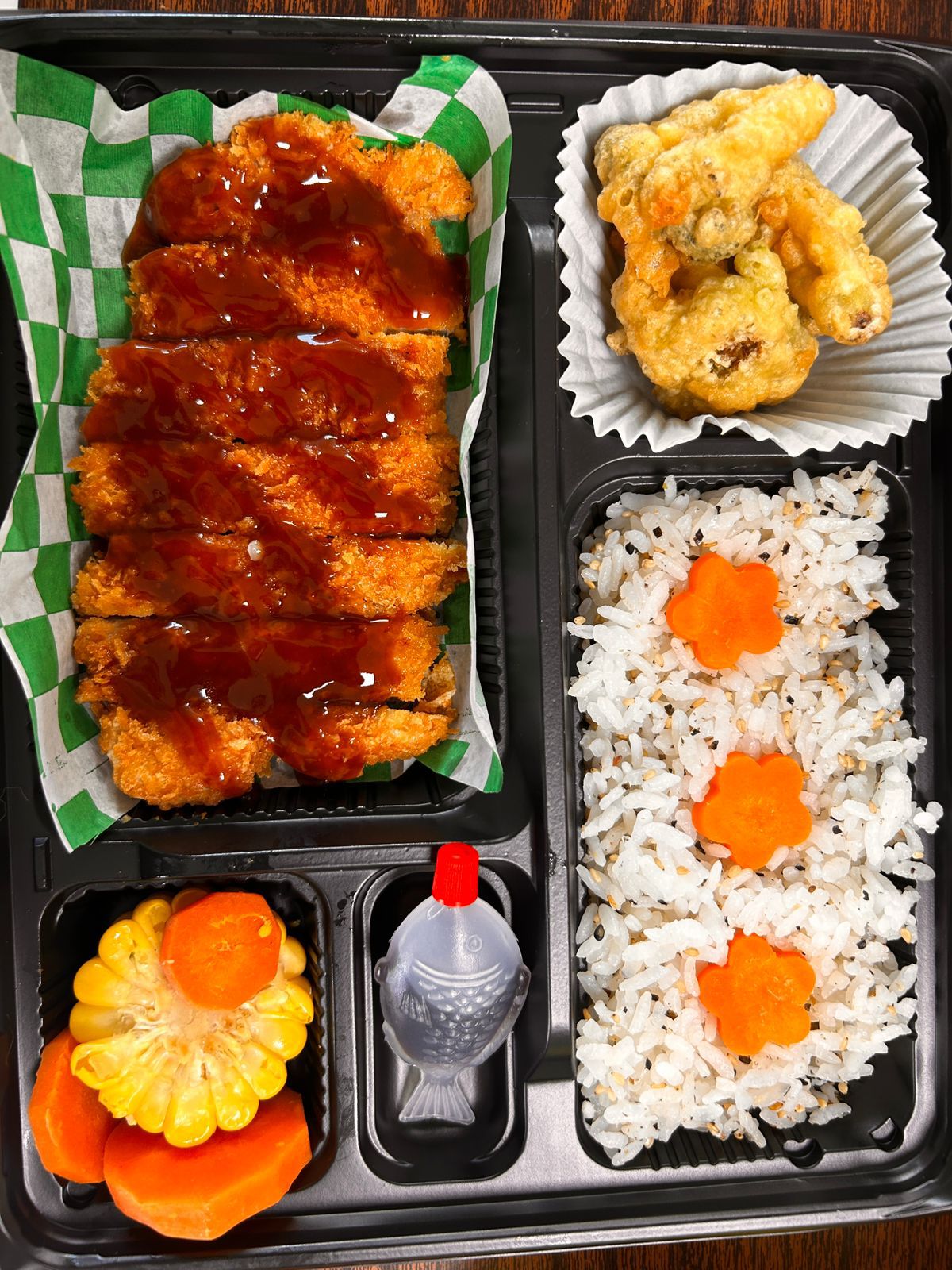 Delicioso bowl de arroz con un topping de crujiente lomo de cerdo empanizado, huevo y salsa especial.