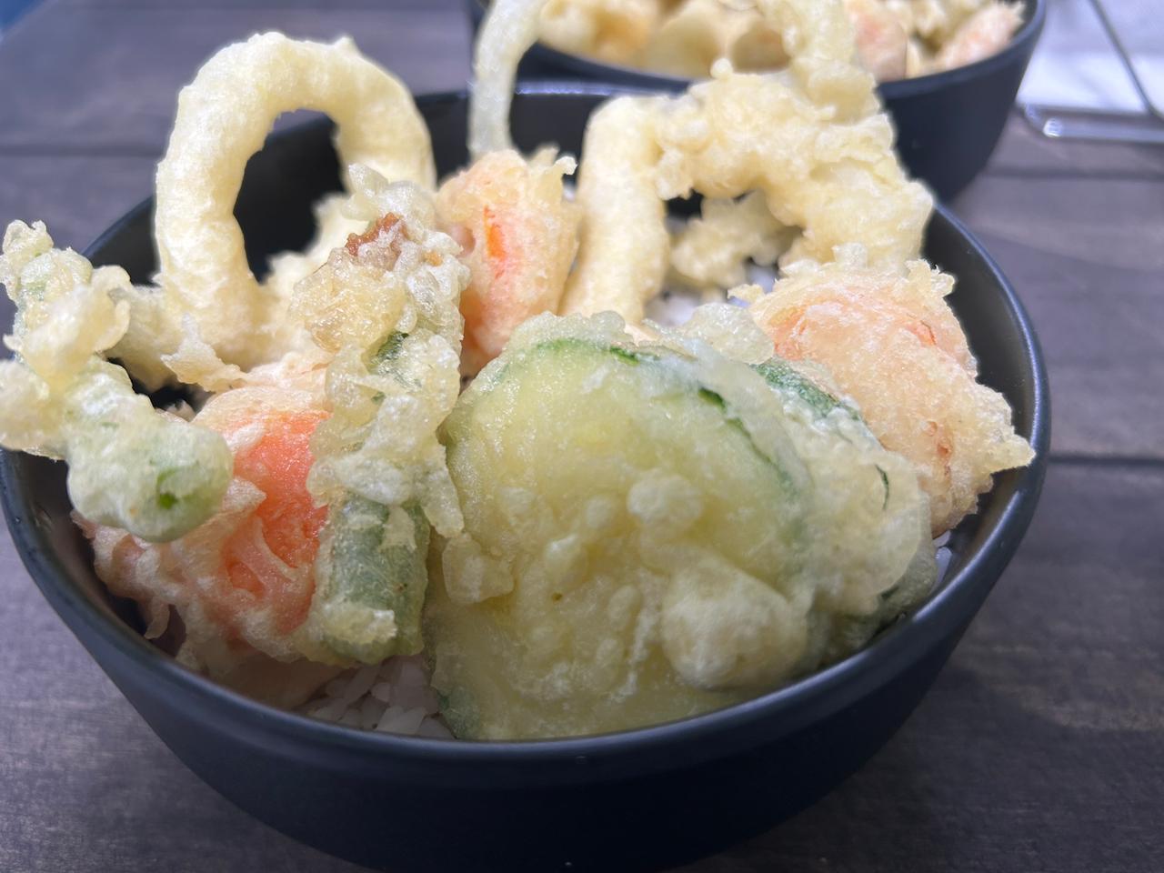 5 camarones grandes rebozados en tempura, servidos con salsa tentsuyu tradicional.