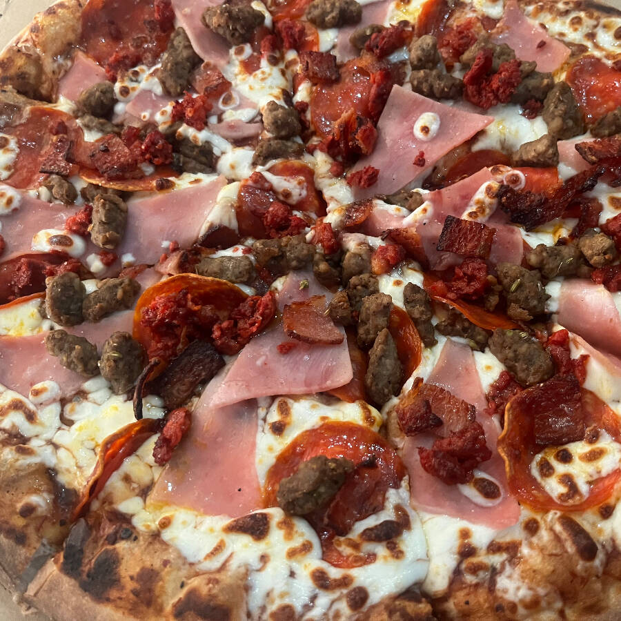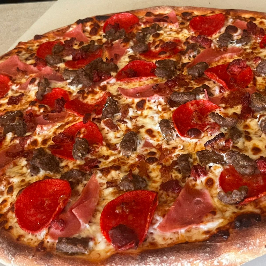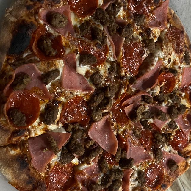 pepperoni, jamón, chorizo español, tocino y salchicha italiana