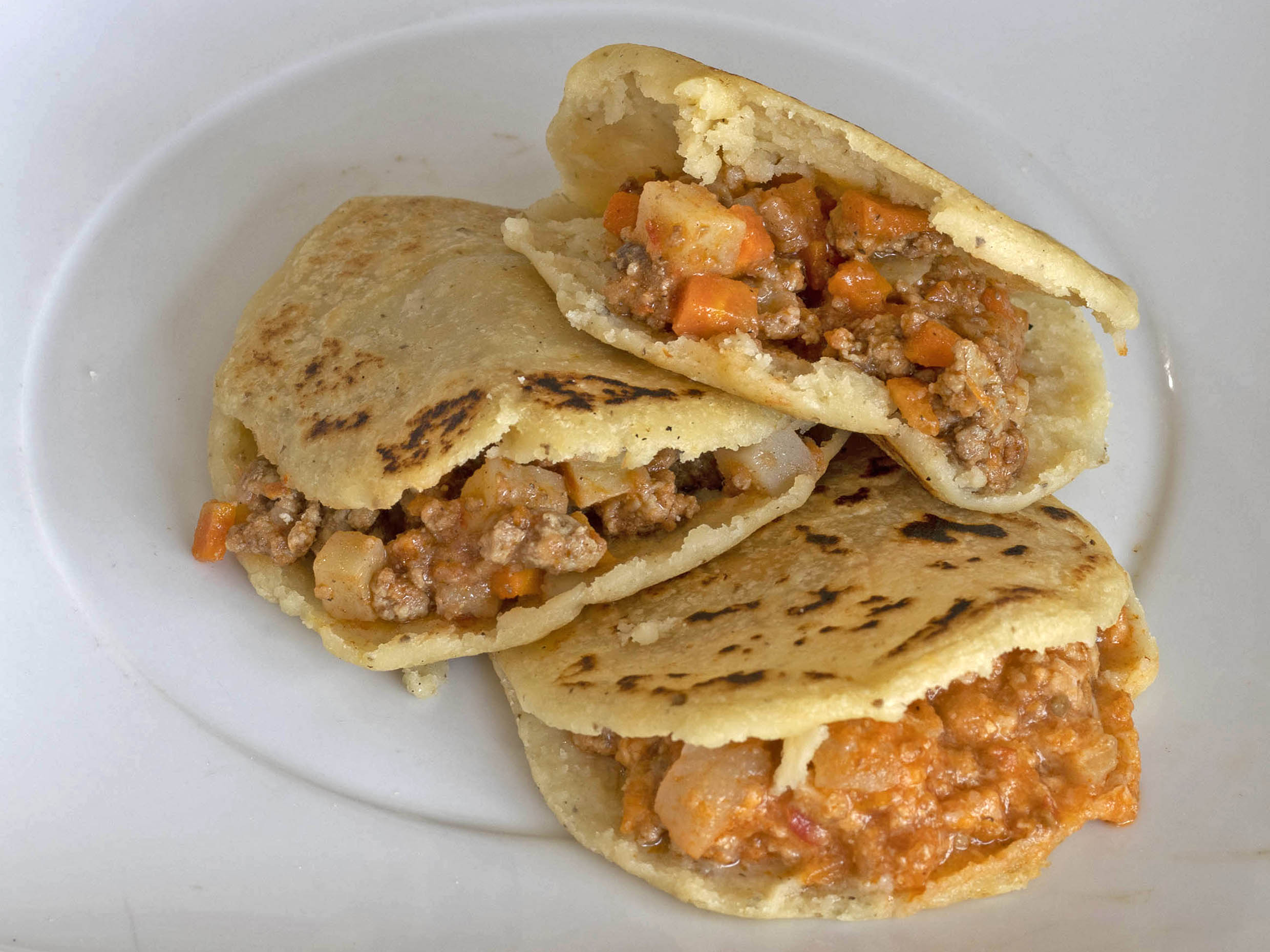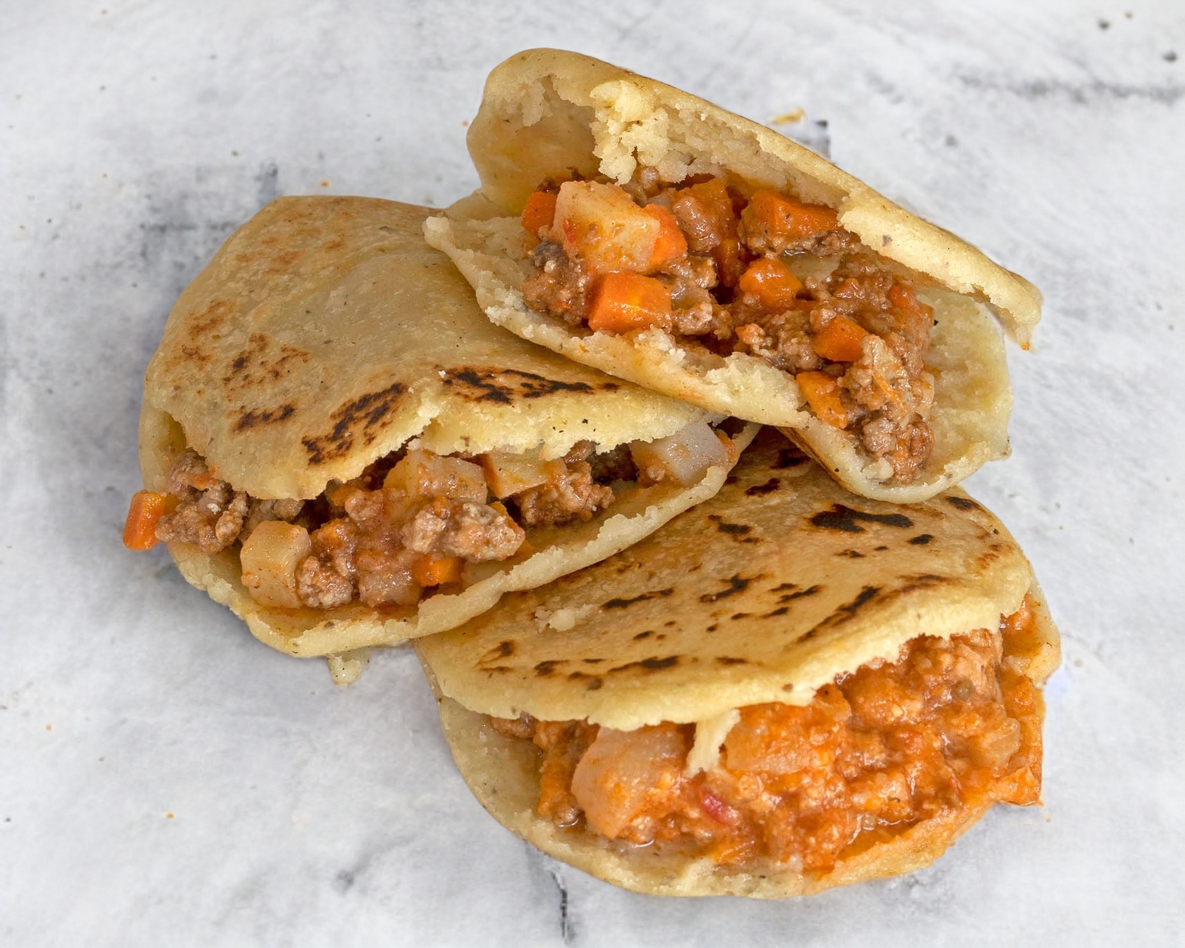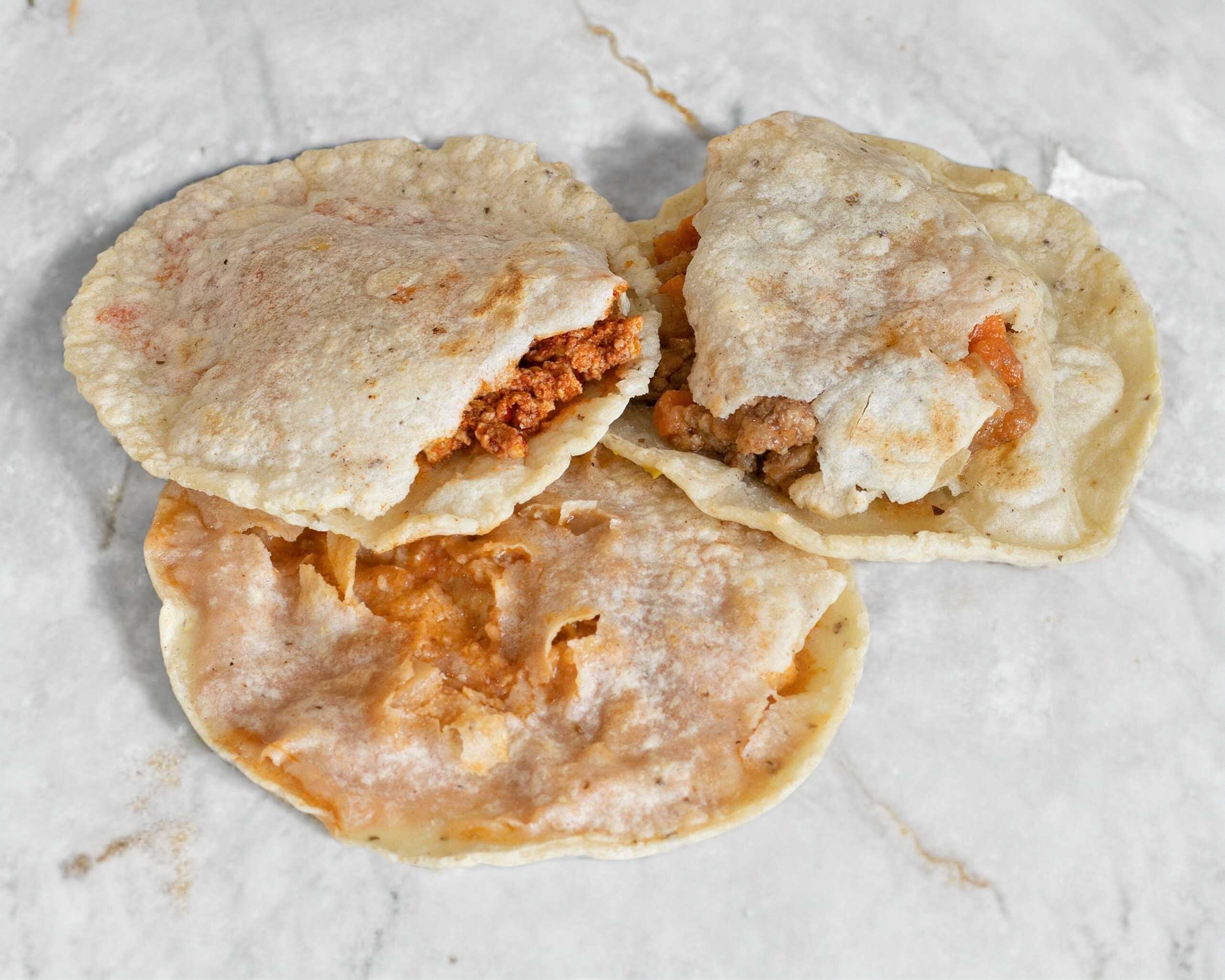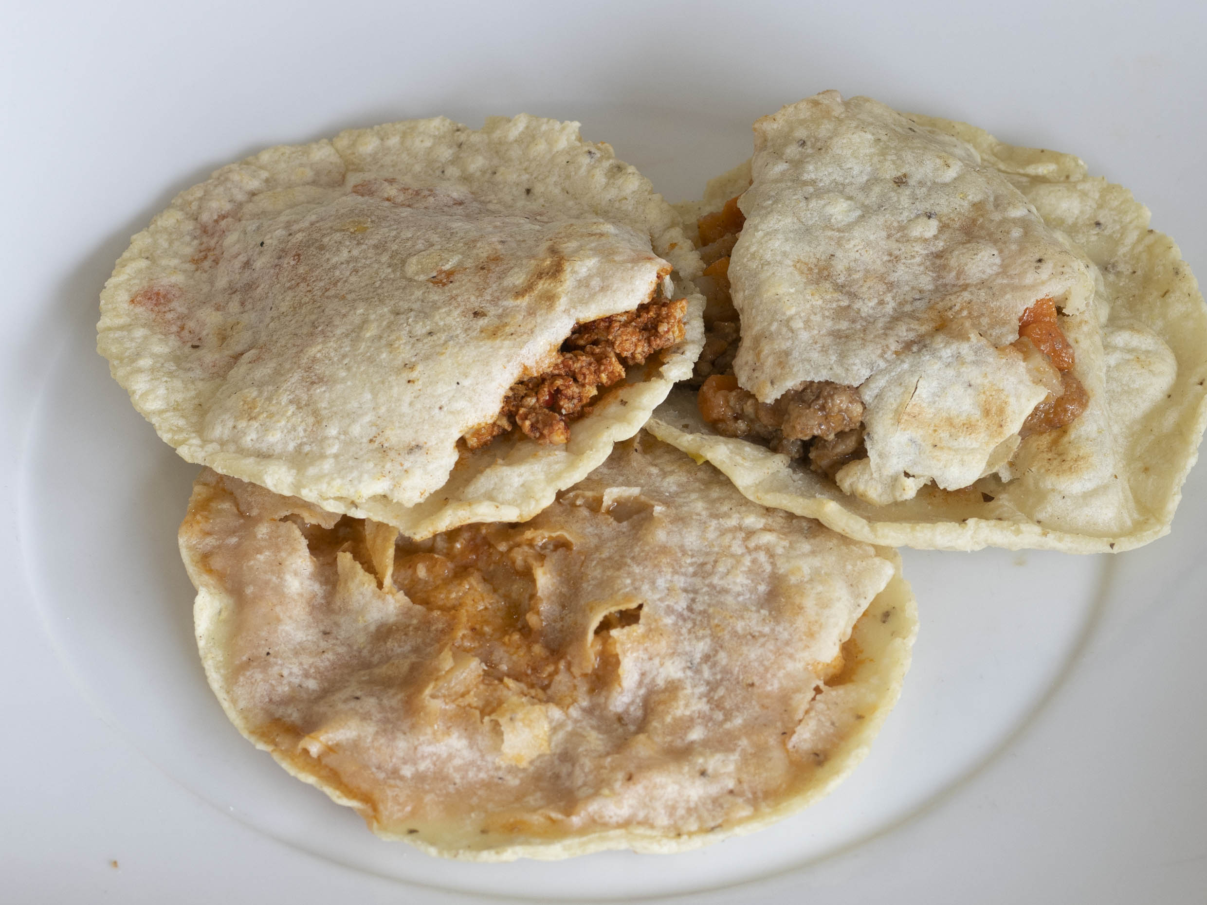 Gordita de maíz recien hecha al comal rellena de guiso a elegir