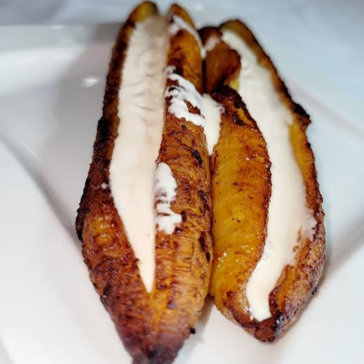 Plátano frito con crema y lechera