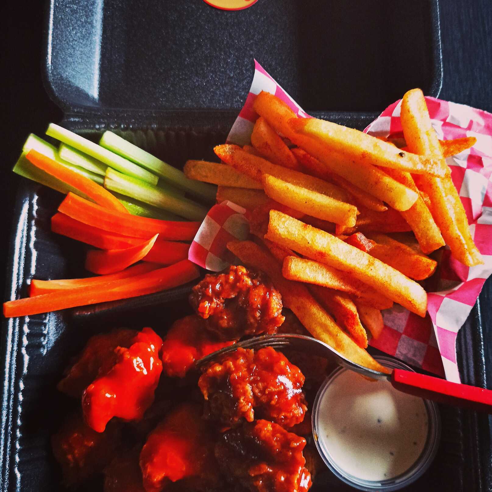 Orden de 30 boneless con 3 salsas a elegir, acompañadas de vegetales y aderezo.