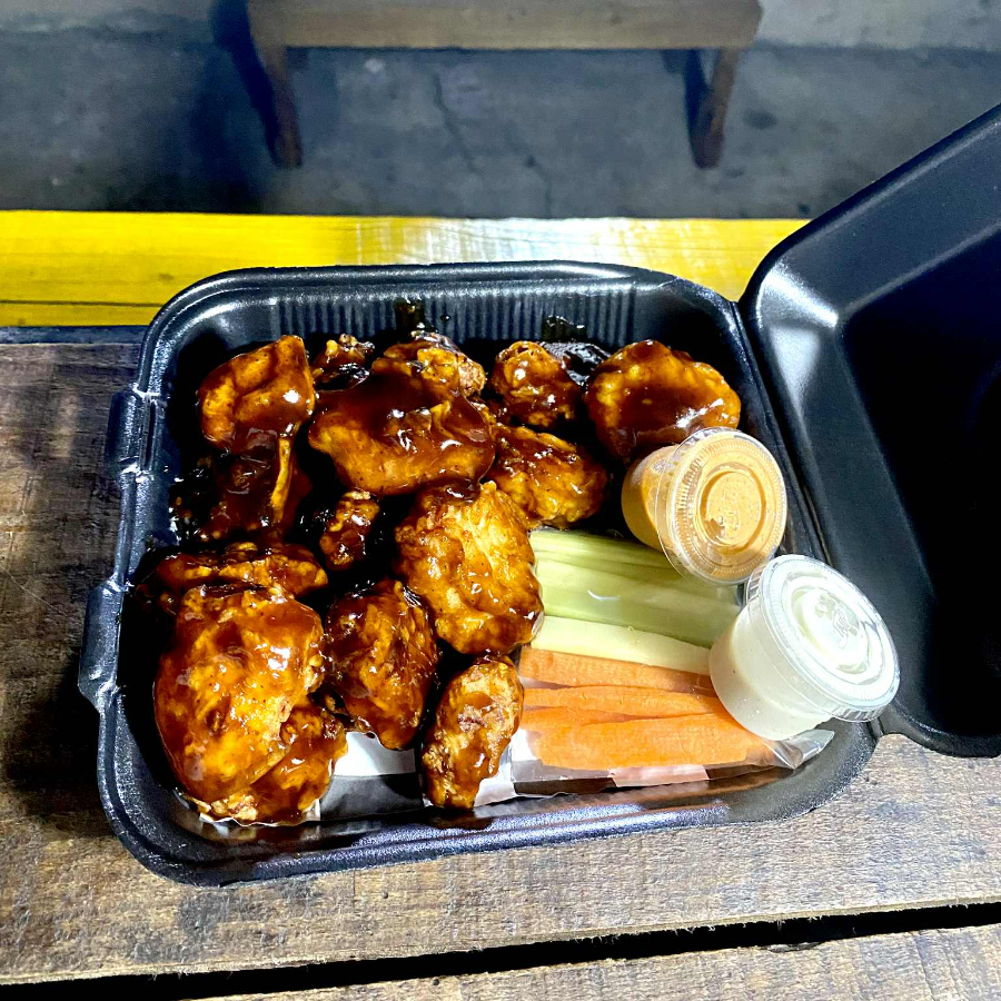 Cama de 400gr de papas fritas sazonadas junto con 250gr de boneless bañados en salsa a elegir.