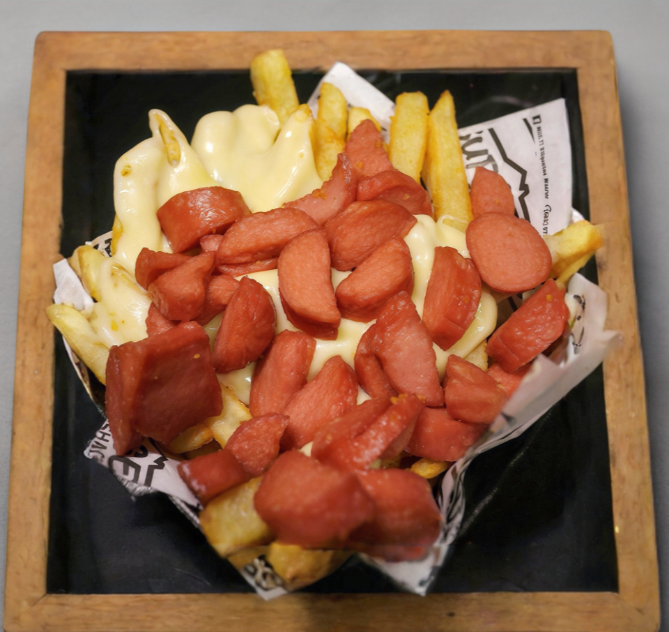 190 g papas, salchicha Frankfurt y queso mozzarella.