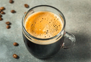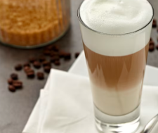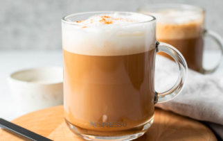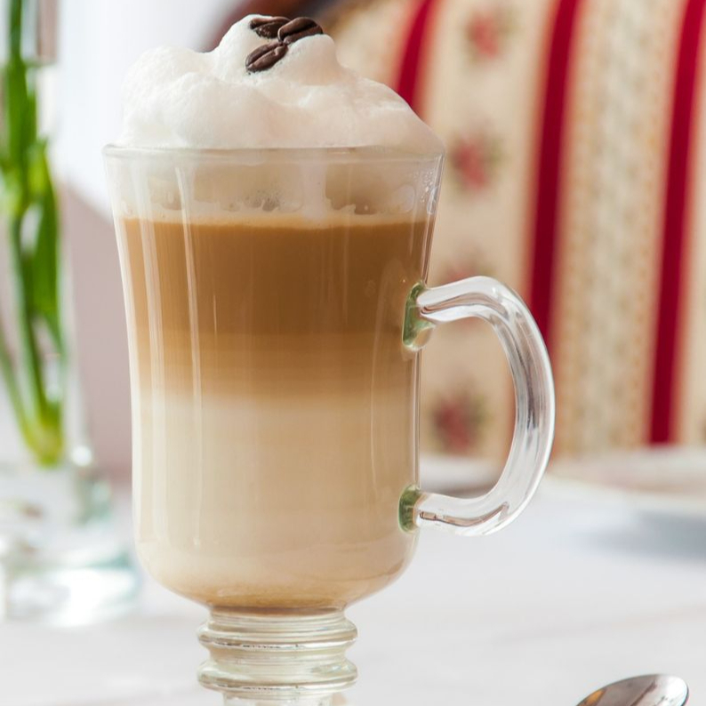 2 oz De espresso endulzado con crema de avellana con 14 oz de leche cremada.