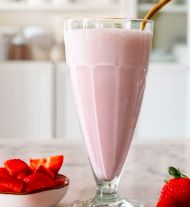 Bebida fría líquida a base de leche con fresas y azúcar.
