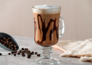 2 oz De espresso endulzado con chocolate con 14 oz de leche cremada.
