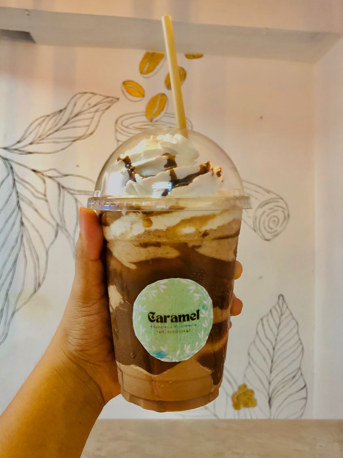 Bebida fría a base de hielo, café y leche endulzada con chocolate.