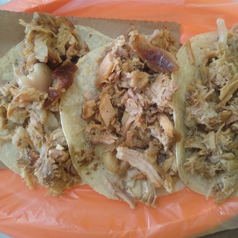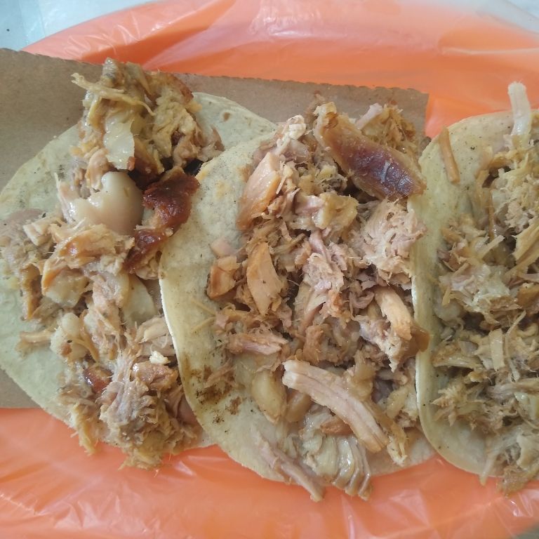 Jugosa Carne de Pierna, Maciza y centro de Pierna sin grasa Acompañado de Salsa verde Jalapeño o Roja de Arbol, Pico de gallo, Cebollas con Habanero y Limones