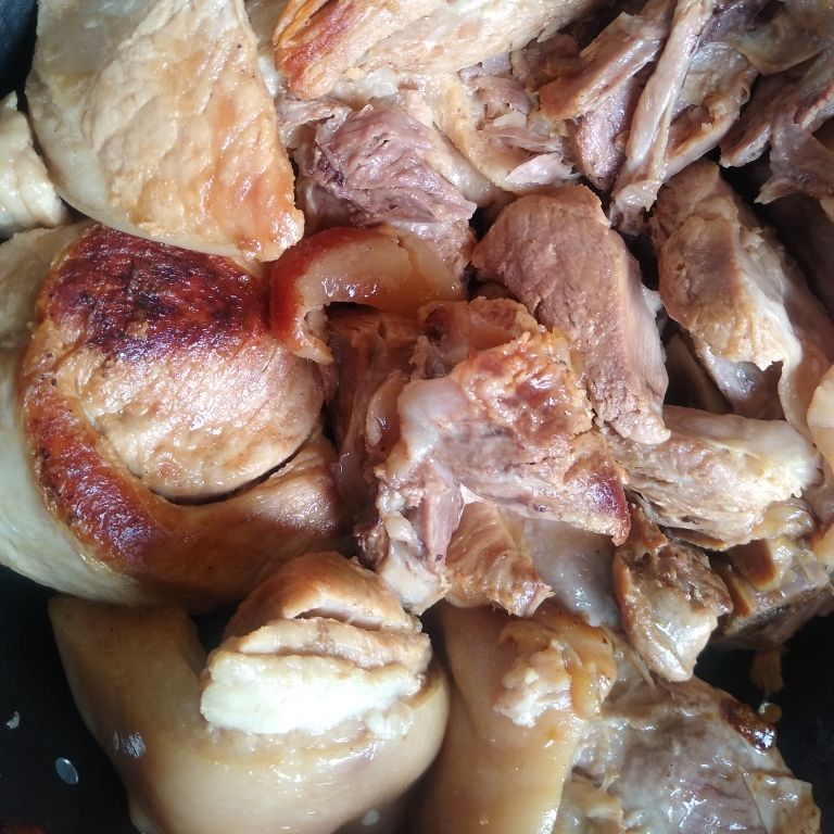 Delicioso Cuerito Planchado, Chamorro, buche y centro de Pierna, incluye salsa juangabriel, la toxica, pico de gallo, cebollas con habanero y limones