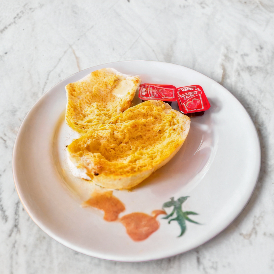 Bolillo tostado untado con mantequilla.