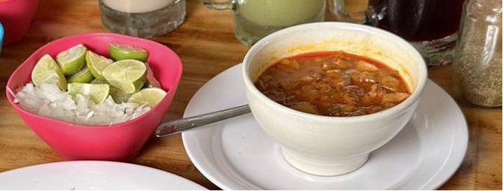 Caldo tradicional con panza de res, sazonado con chile y especias. menudo 1 litro. Incluye tortillas o pan francés.