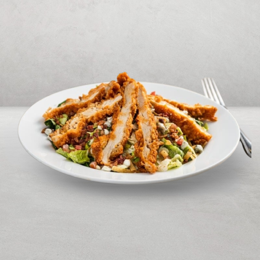 Pechuga empanizada con Signature Buffalo Wings, lechuga, trocitos Bleu Cheese, tocino, tiritas de tortilla, pico de gallo. Ranch y Chipotle Ranch.