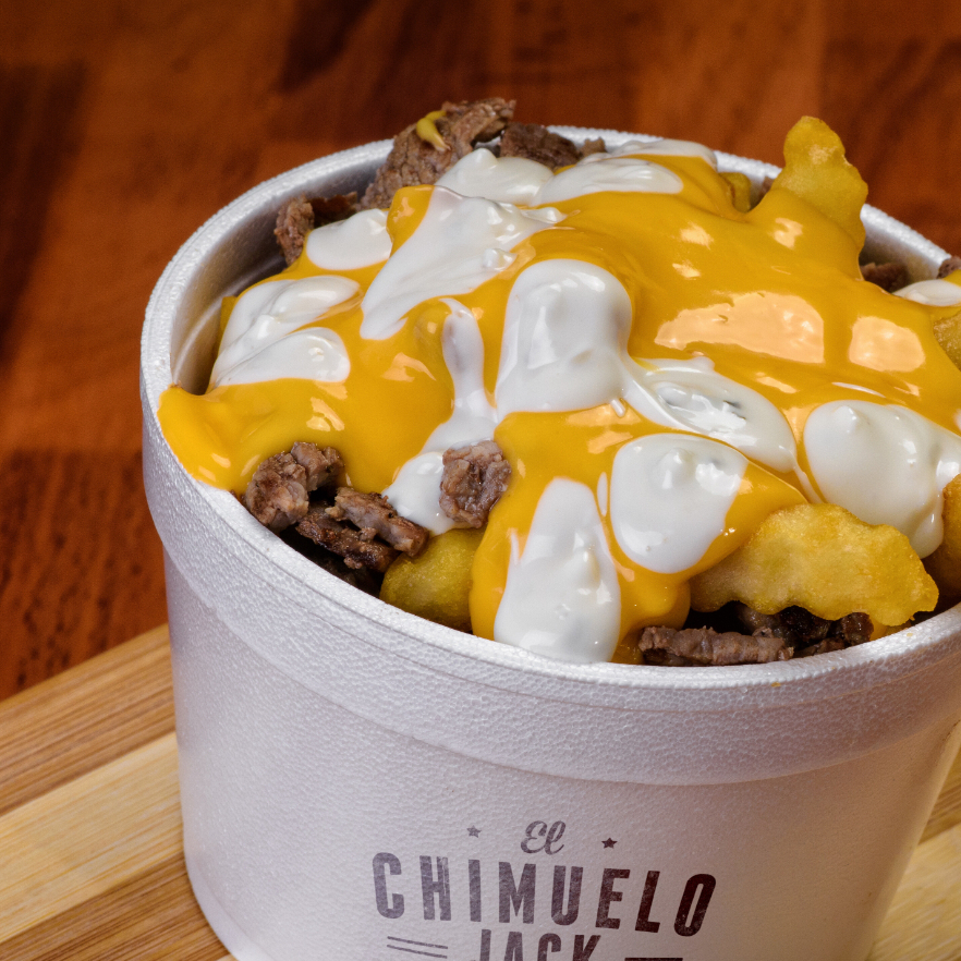 Papas fritas con carne de res a la plancha, cebolla asada, doble capa de queso (manchego y cheddar). ¡El side más potente!