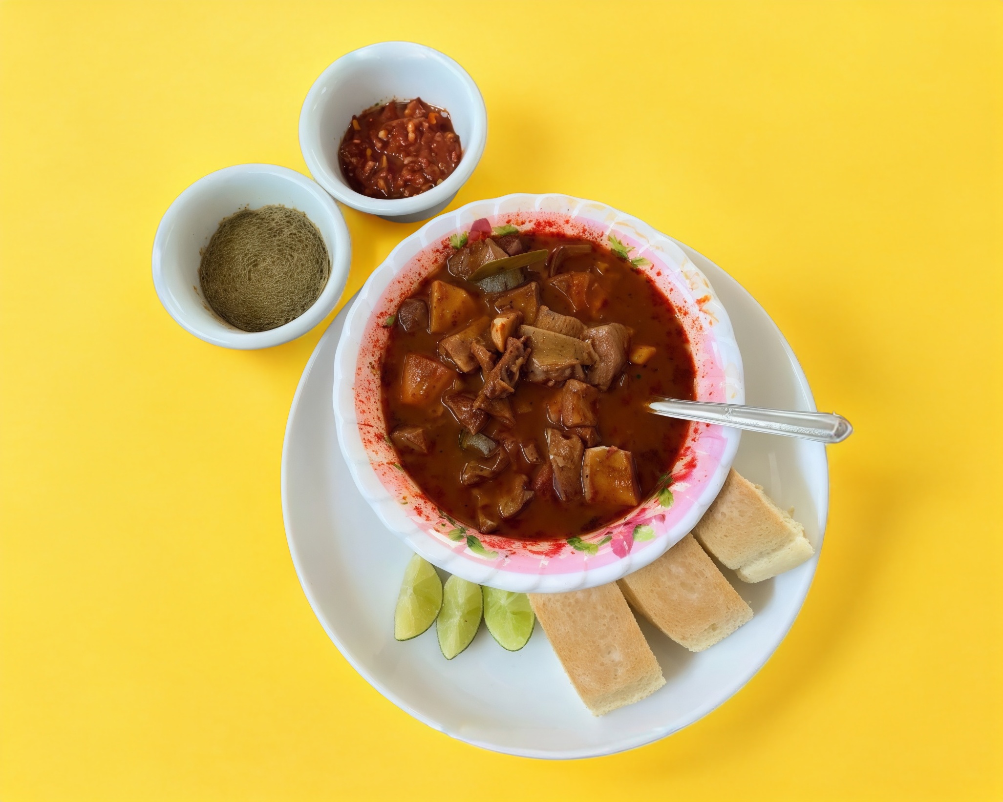 1 Litro de Menudo con sus complementos cilantro,cebolla,limón y 1bolillo