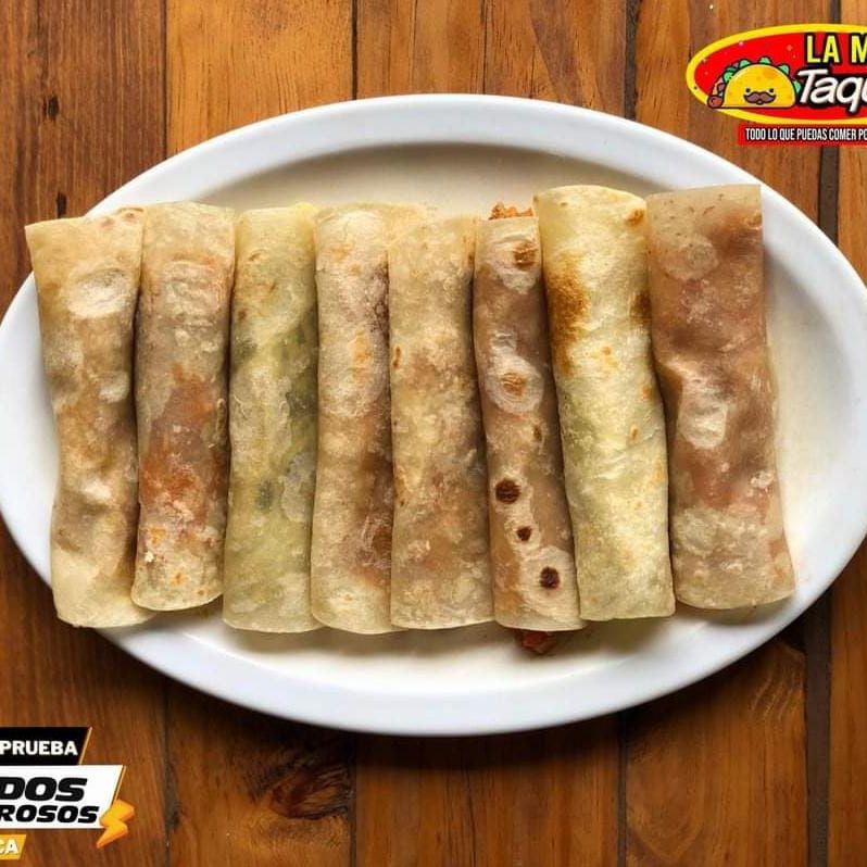 6 Flautas base de frijol acompañadas con lechuga, tomate, cebolla, crema y queso