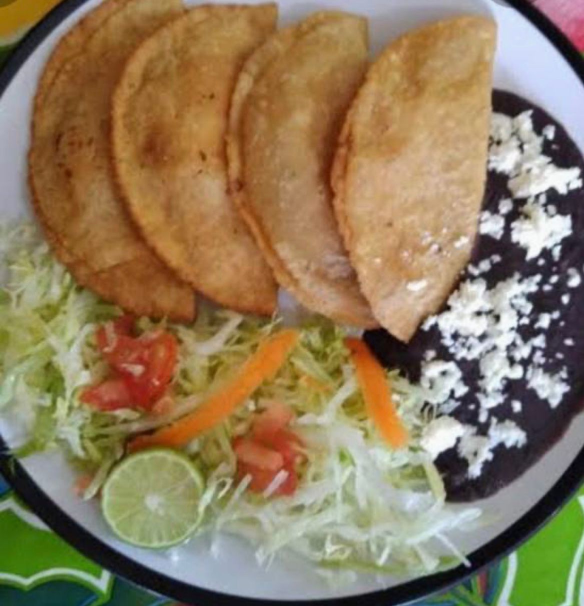 Incluye: 4 quesadillas rellenas de queso, frijoles, ensalada de lechuga.