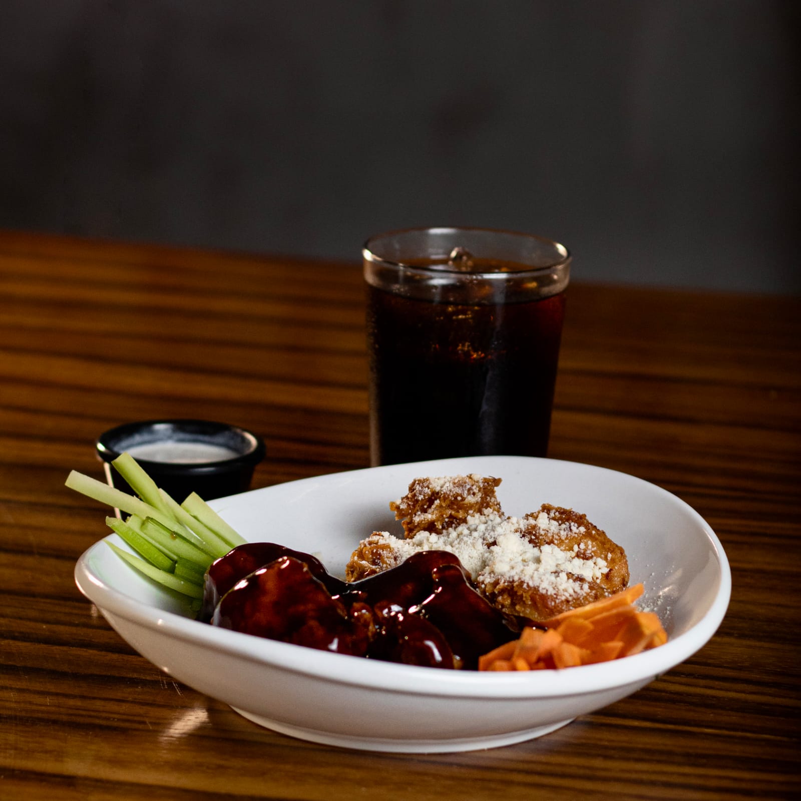 Elige de nuestras salsas: buffalo, BBQ, parmesano, mango habanero o tamarindo.