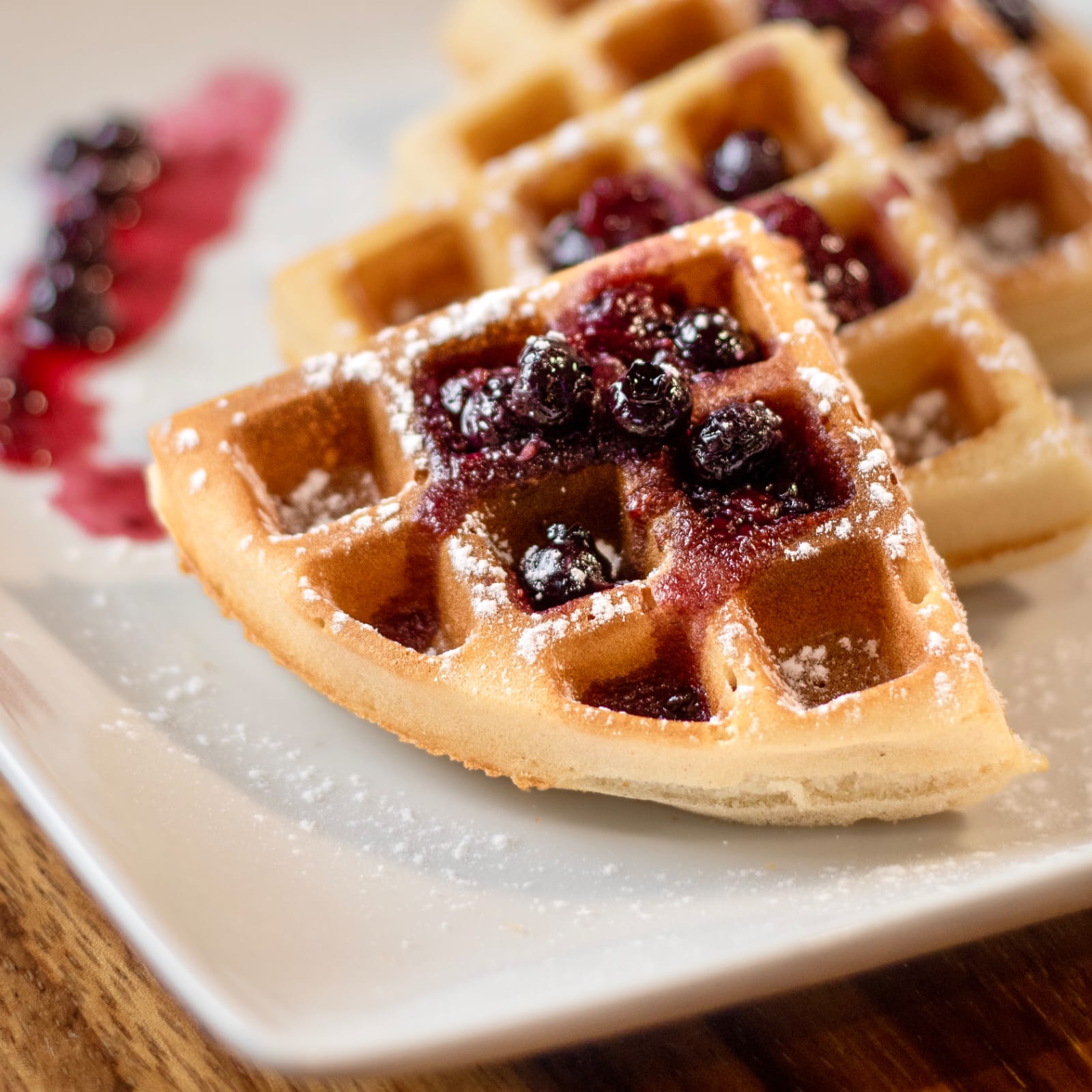 Acompañado de mermelada de frutos rojos y azúcar glass.