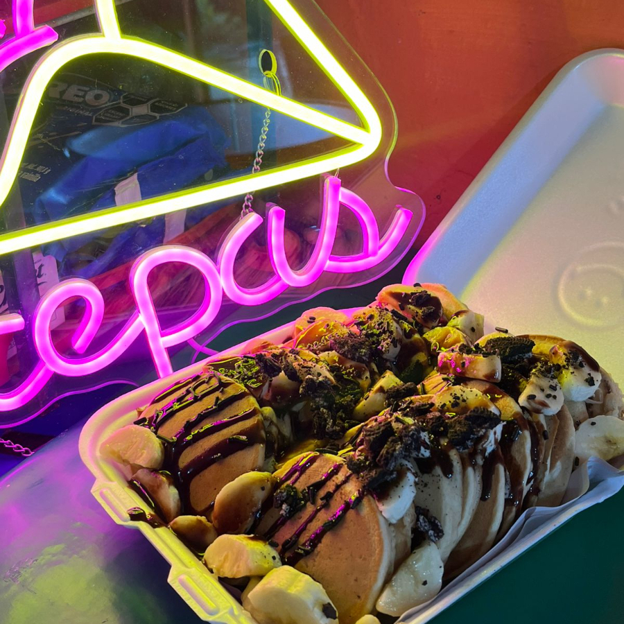 15 Minis Hot Cakes con platano, hershesy, oreo, chispas chocolate AGREGA ING, EXTRA
