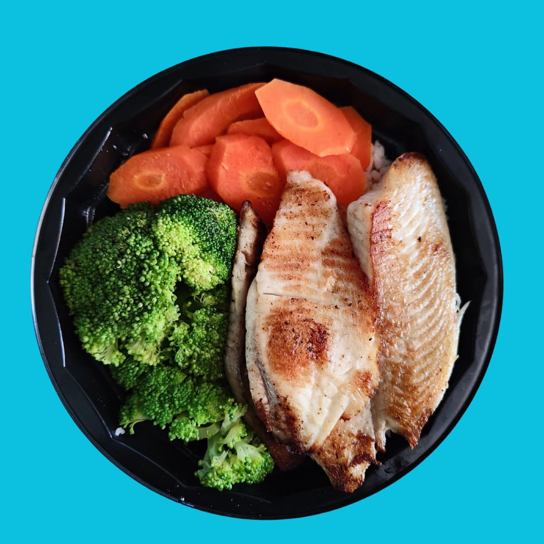 Filete de pescado a la plancha con verduras y arroz al vapor