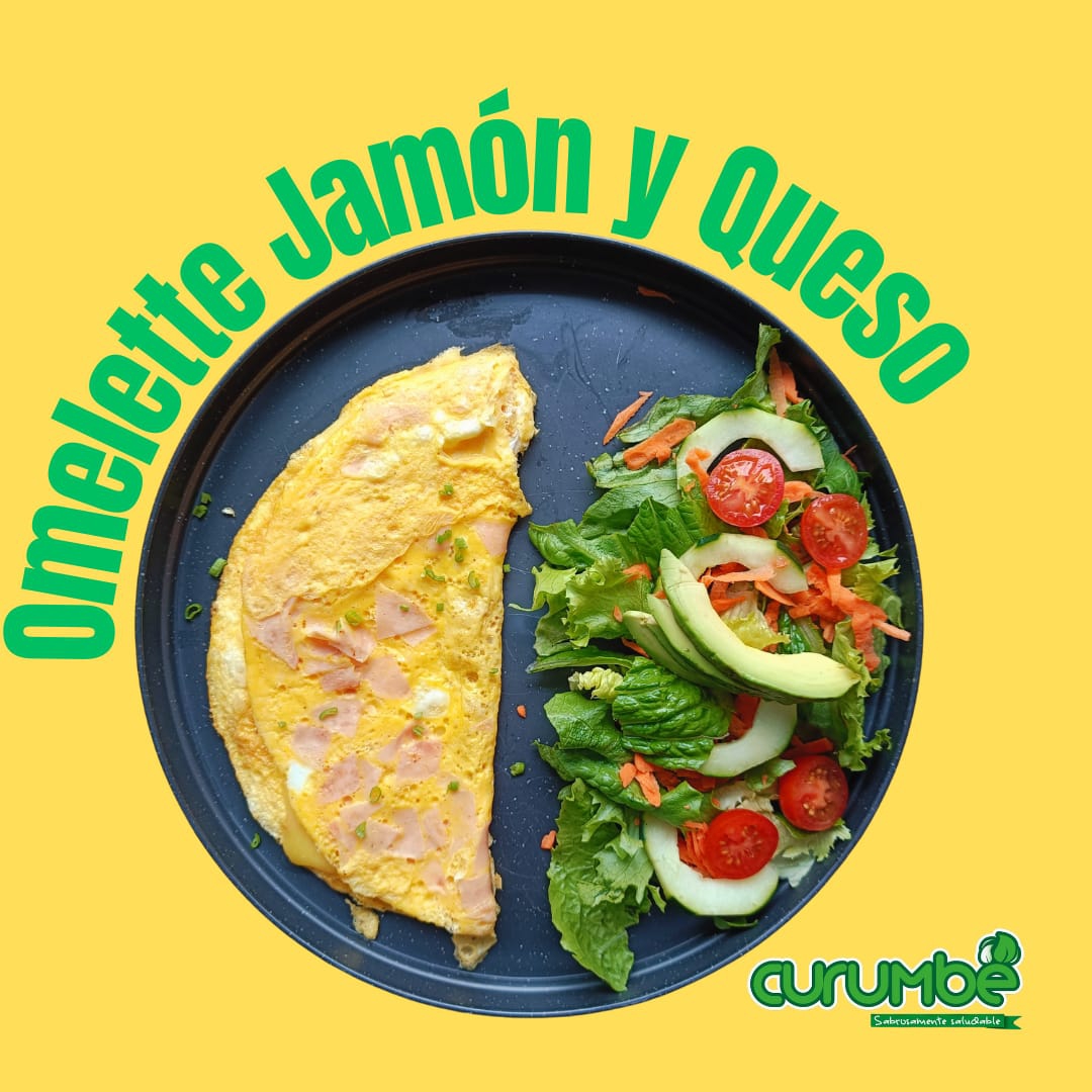Jamón de pechuga de pavo, huevo hervido, queso panela, mix de lechugas, pepino, tomate cherry y zanahoria rallada.
