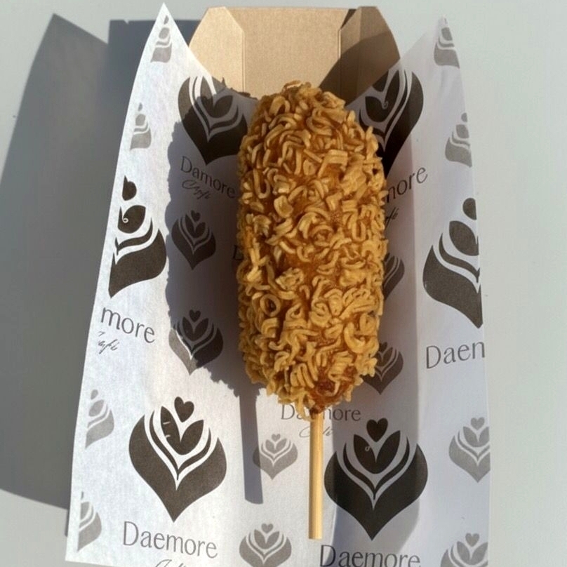 Deliciosa banderilla de RAMEN, crujiente y con trozos de ramen por fuera, rellena de lo que más se te antoje. Puedes elegir entre queso manchego, salchicha o la mezcla perfecta de ambos. ¡Una combinación deliciosa! Incluye dos aderezos.