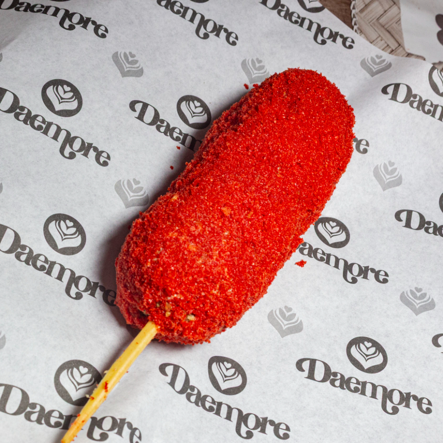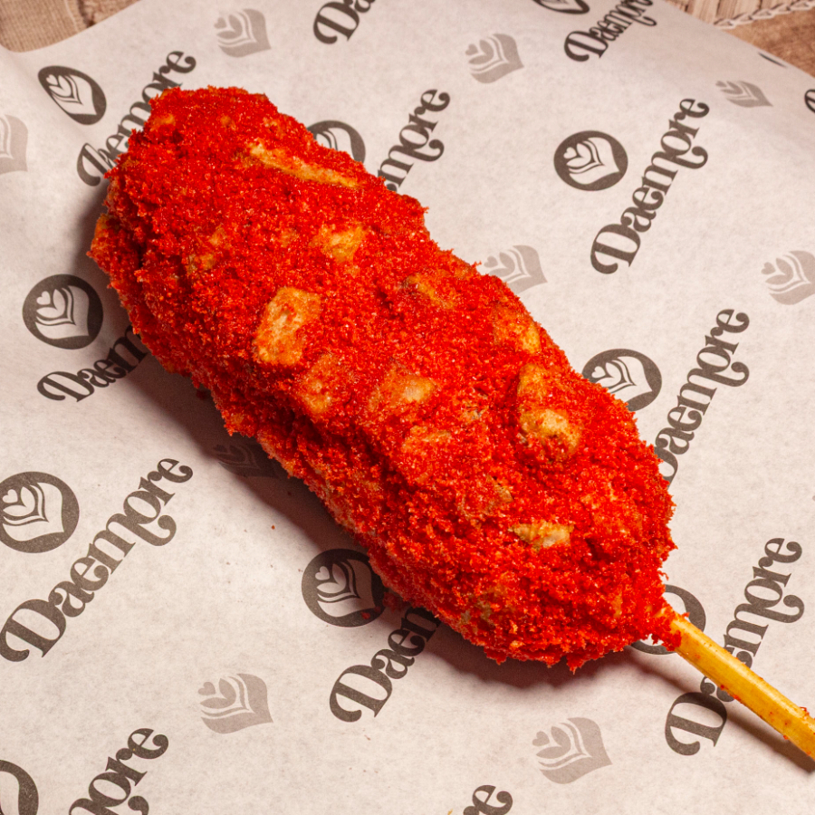 Deliciosa banderilla de FLAMIN HOT, crujiente y picosita por fuera, rellena con lo que más se te antoje. Puedes elegir entre queso manchego, salchicha o la combinación perfecta de ambos. ¡Una opción irresistible y llena de sabor! Incluye dos aderezos.