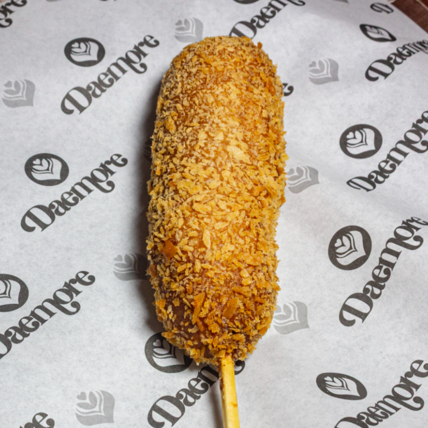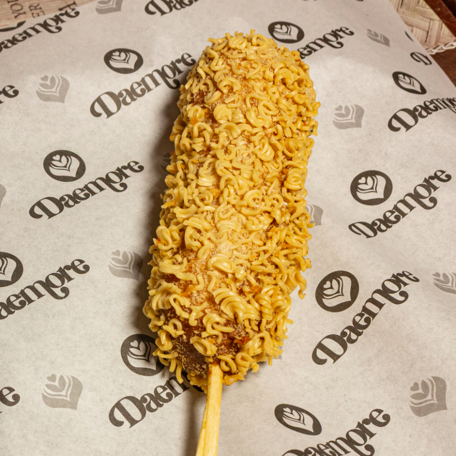 Deliciosa banderilla de RAMEN, crujiente y con trozos de ramen por fuera, rellena de lo que más se te antoje. Puedes elegir entre queso manchego, salchicha o la mezcla perfecta de ambos. ¡Una combinación deliciosa! Incluye dos aderezos.