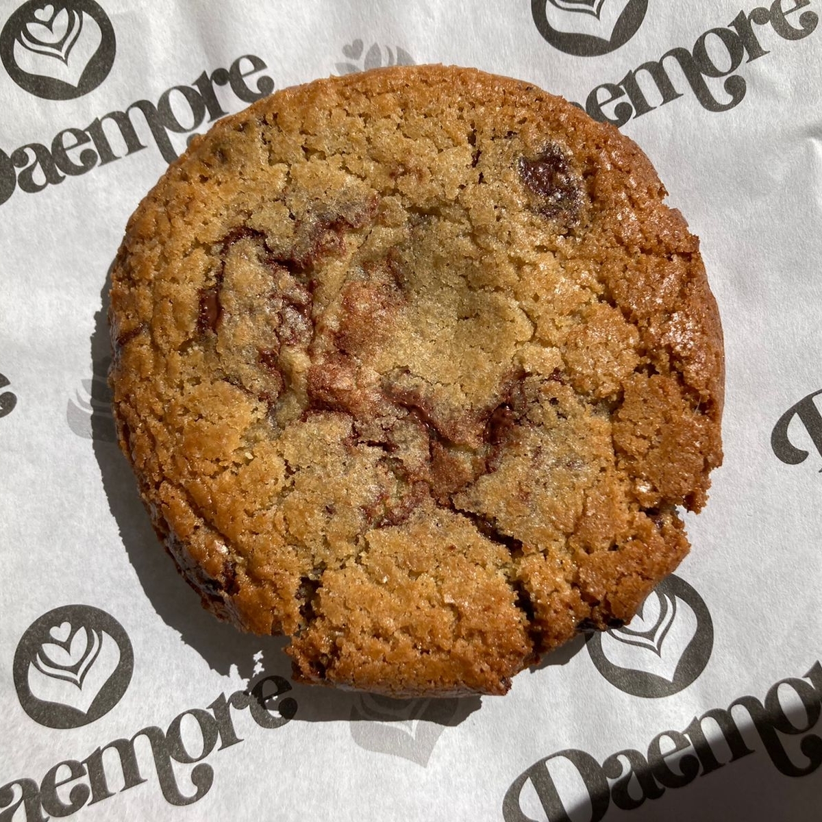 Galleta estilo New York de chispas de chocolate acompañada de un delicioso Latte.