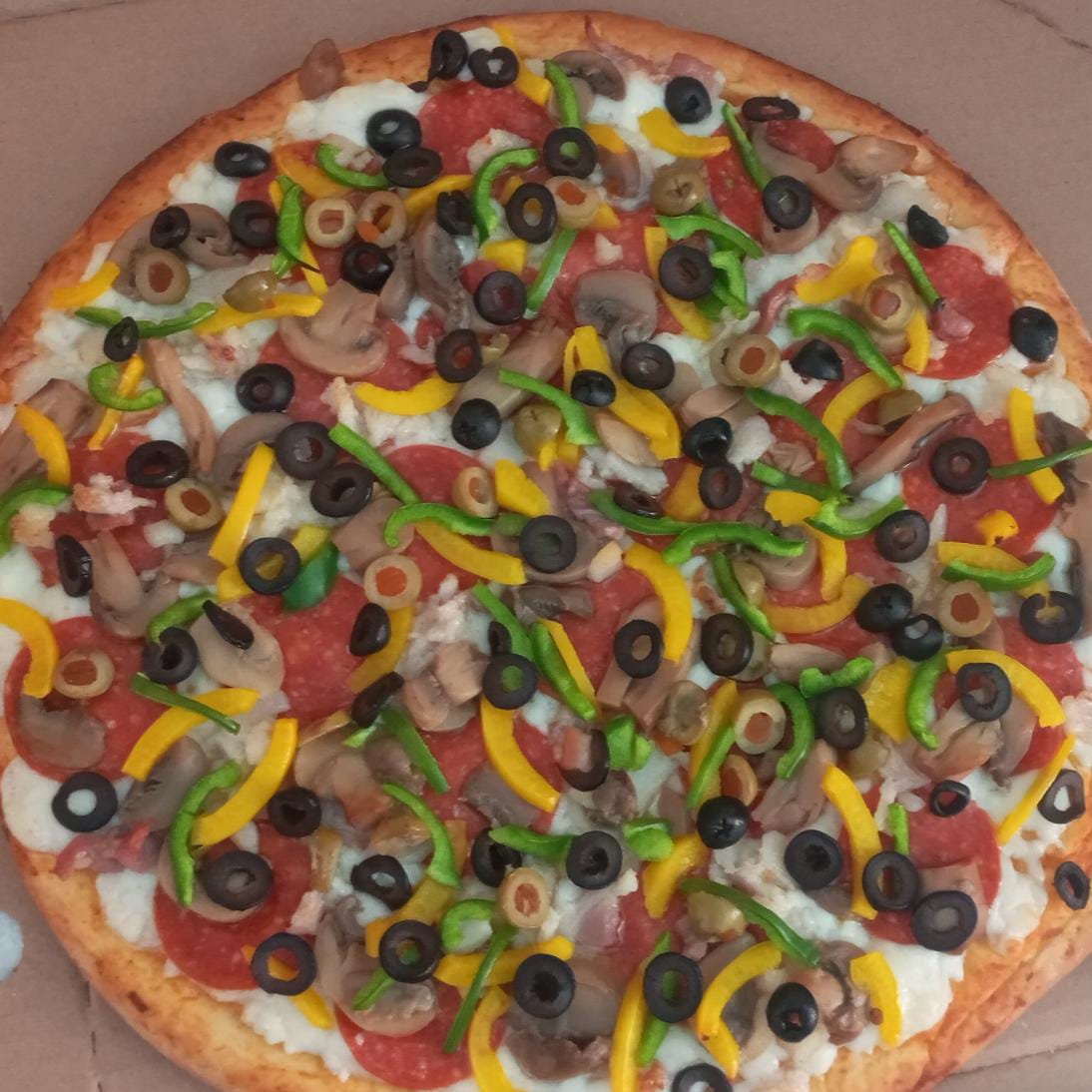 Peperoni, Champiñón, Pimiento, Tocino, Olivos Negros, Aceitunas