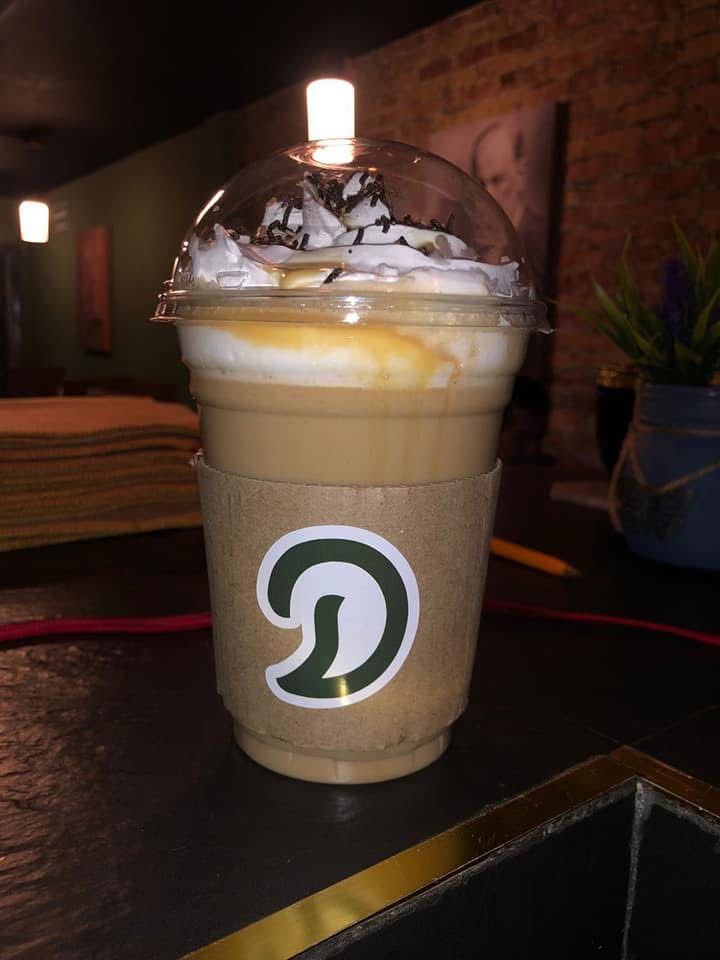 2 oz De café crema irlandesa y cocoa con hielo frapeado.