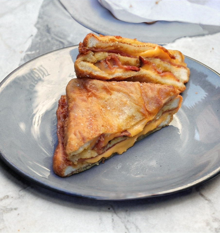3 Piezas de huevo, jamón, acompañado de queso manchego, frijol y queso fresco.