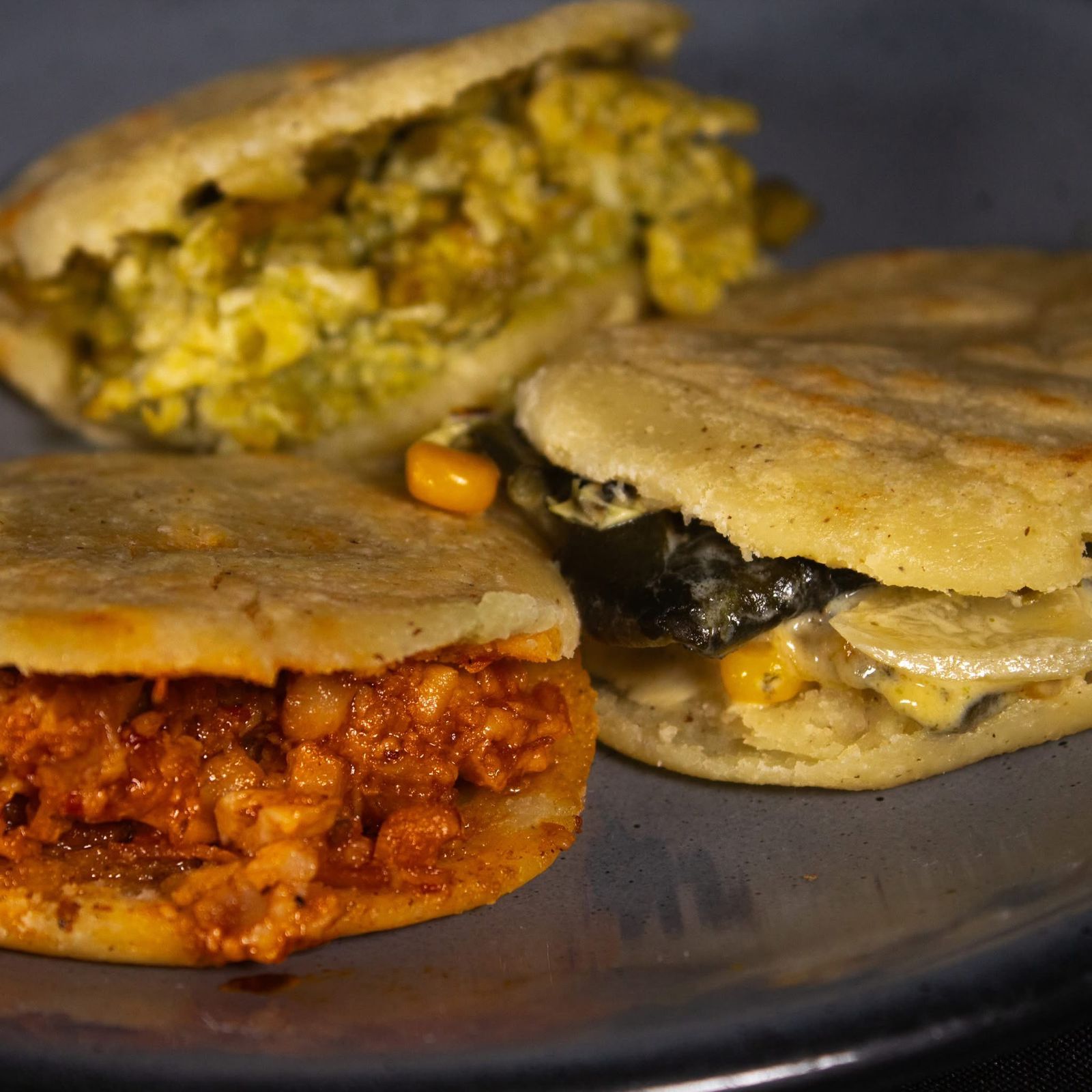 3 Piezas de huevo, deshebrada, cebolla, pimientos y champiñones salteados, acompañado de queso manchego, frijol y queso fresco.