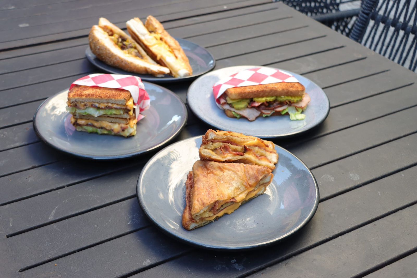 Pan bollo parrillero, 140 gramos de carne de res, lechugas, tomate, queso americano y queso mozzarella, champiñones y queso gratinado, acompañado con papas gajo.