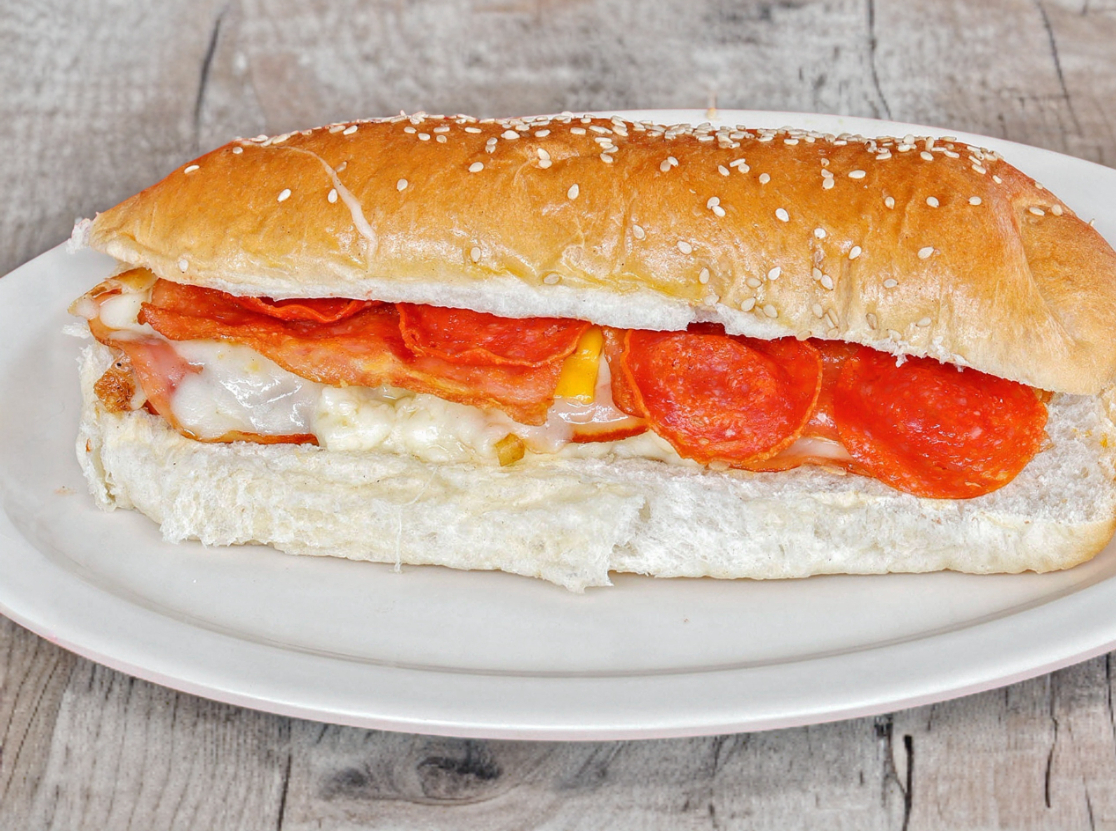 Jamón, queso amarillo, tomate, cebolla, chile, ensalada, mayonesa, mostaza y cátsup.