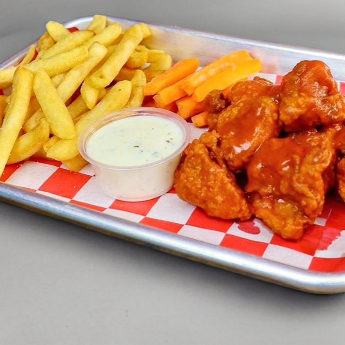 Boneless 'Alas del Fénix' crujientes por fuera y jugosos por dentro, bañados en salsa a elegir. Un platillo digno de las mesas del gran comedor.
